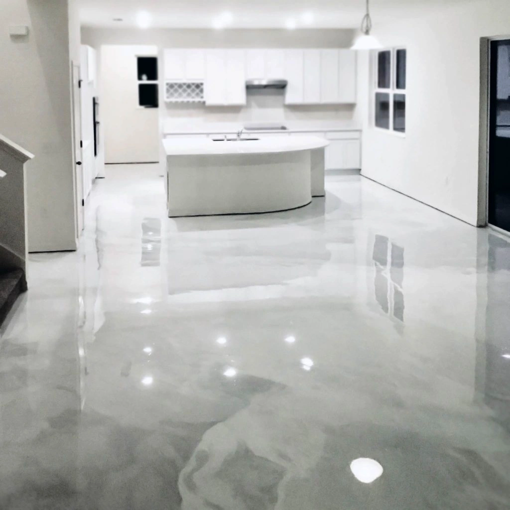We mix fine metallic pigments into a clear epoxy resin and pour it out. As it cures, we use specialized tools to manipulate the resin, creating those flowing, natural-looking veins. Finally, we seal it with a tough polyurethane topcoat to protect the floor from scratches, scuffs, and everyday spills.